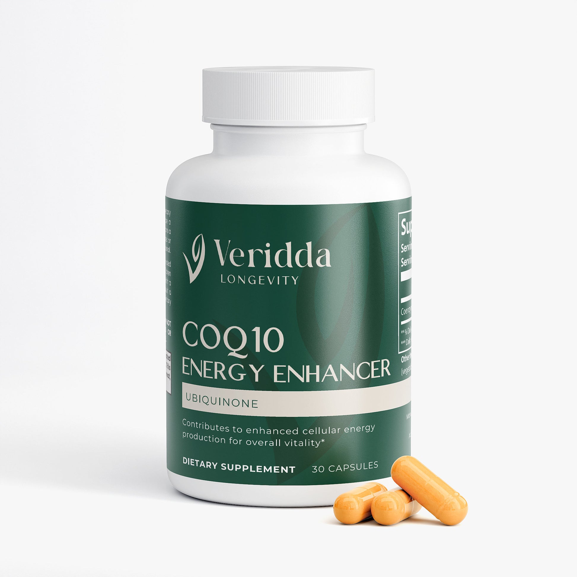 CoQ10 supplement supports mitochondrial function, helping to enhance cellular energy production for overall vitality.